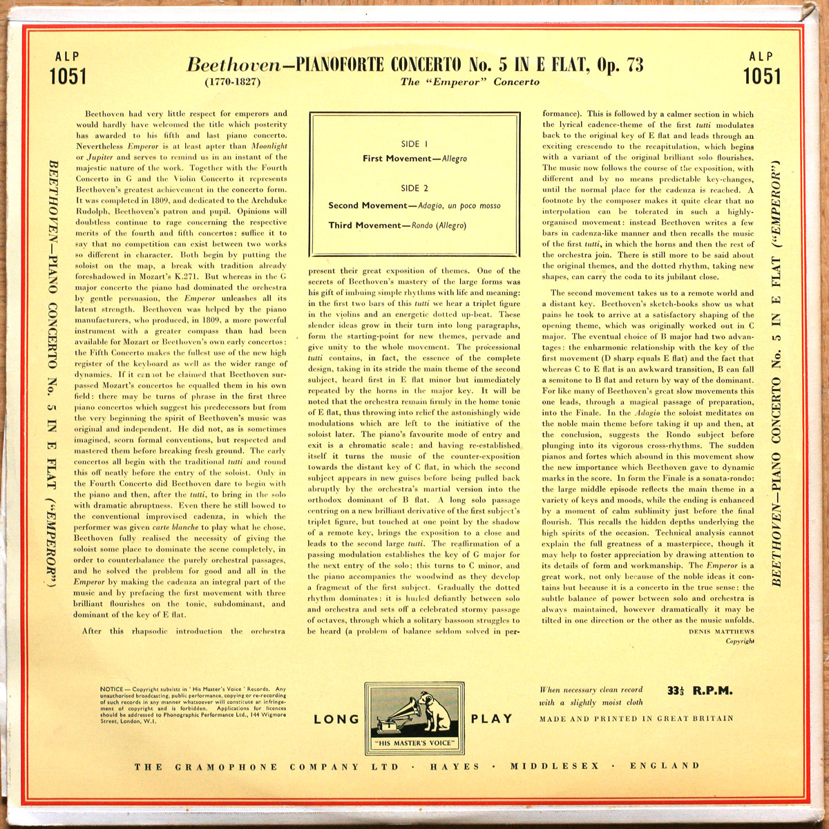 Beethoven • Concerto pour piano n° 5 “Empereur” • Klavierkonzert Nr. 5 • “Emperor” concerto • His Master’s Voice ALP 1051 • Edwin Fischer • Philharmonia Orchestra • Wilhelm Furtwängler