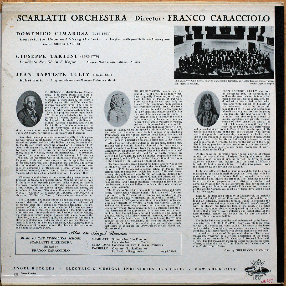 Cimarosa – Concerto pour hautbois • Tartini – Concerto n° 58 • Lully – Ballet Suite • Angel Records 35255 • The Orchestra Alessandro Scarlatti • Franco Caracciolo