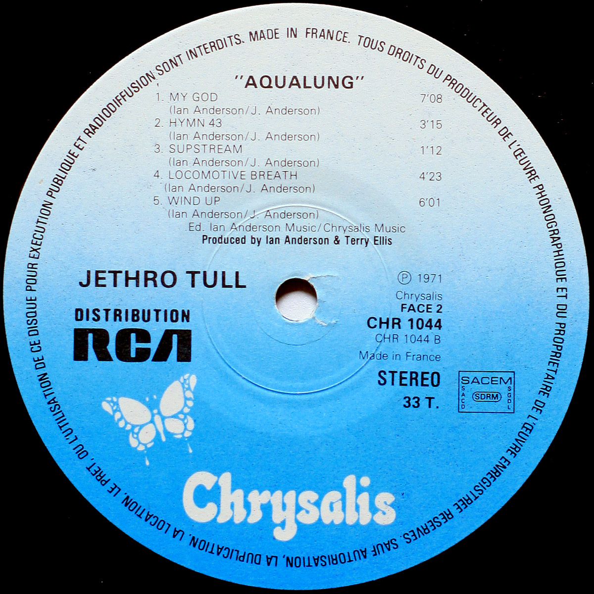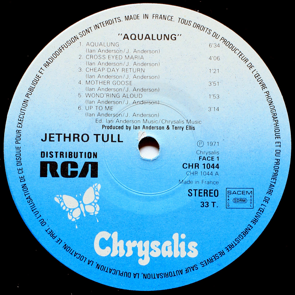 Jethro Tull • Aqualung • Chrysalis CHR 1044 (RC 250) • Ian Anderson • Martin Barre • Jeffrey Hammond-Hammond • John Evan • Clive Bunker