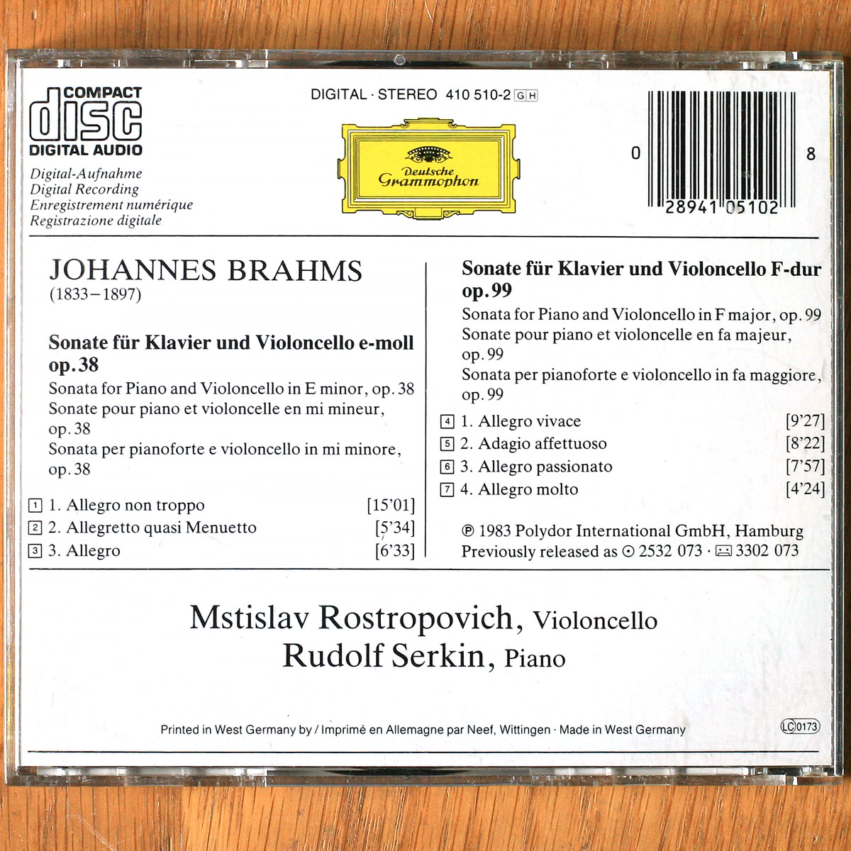Johannes Brahms • Les sonates pour piano & violoncelle • The cello sonatas • Die Cellosonaten • DGG 410 510-2 • Mstislav Rostropovich • Rudolf Serkin
