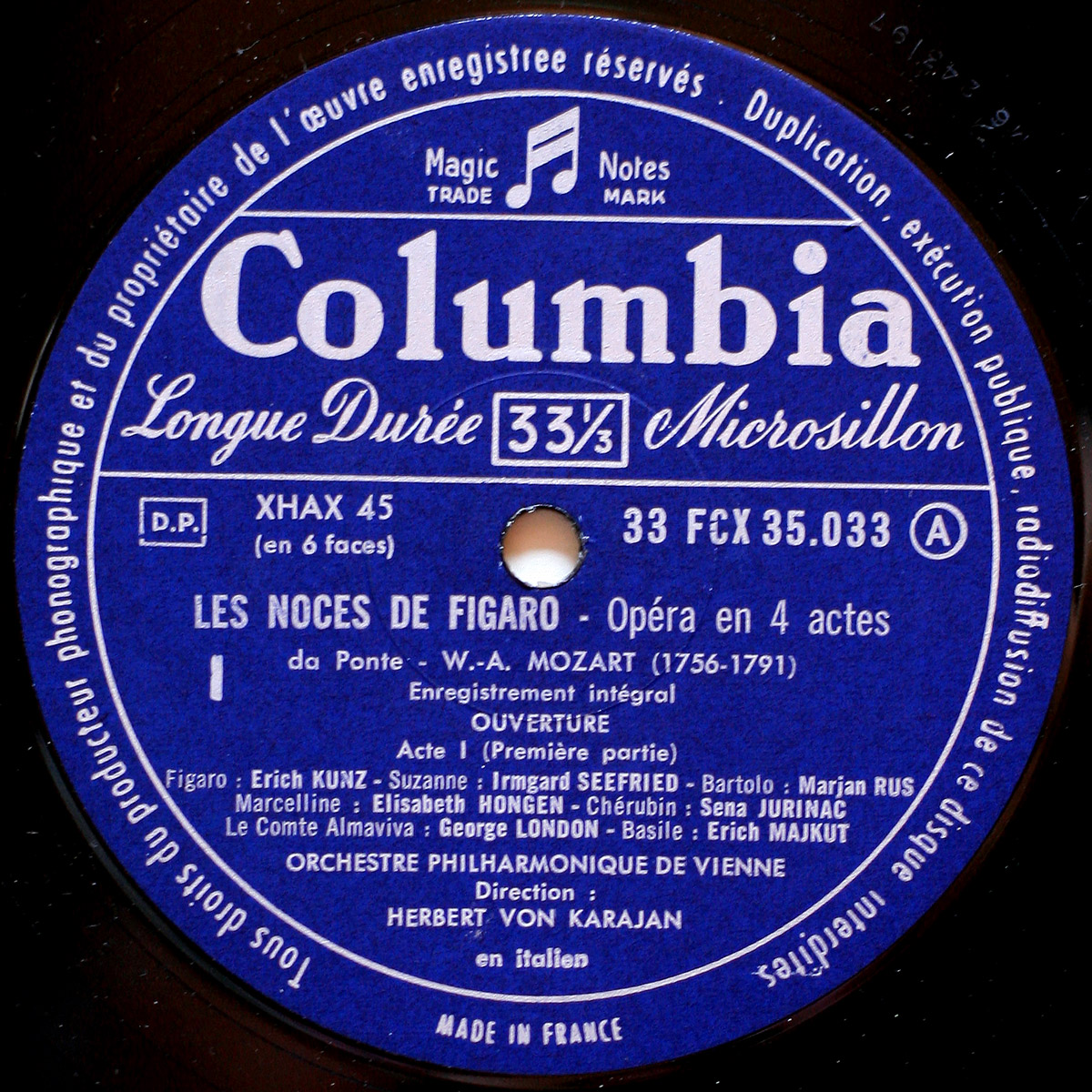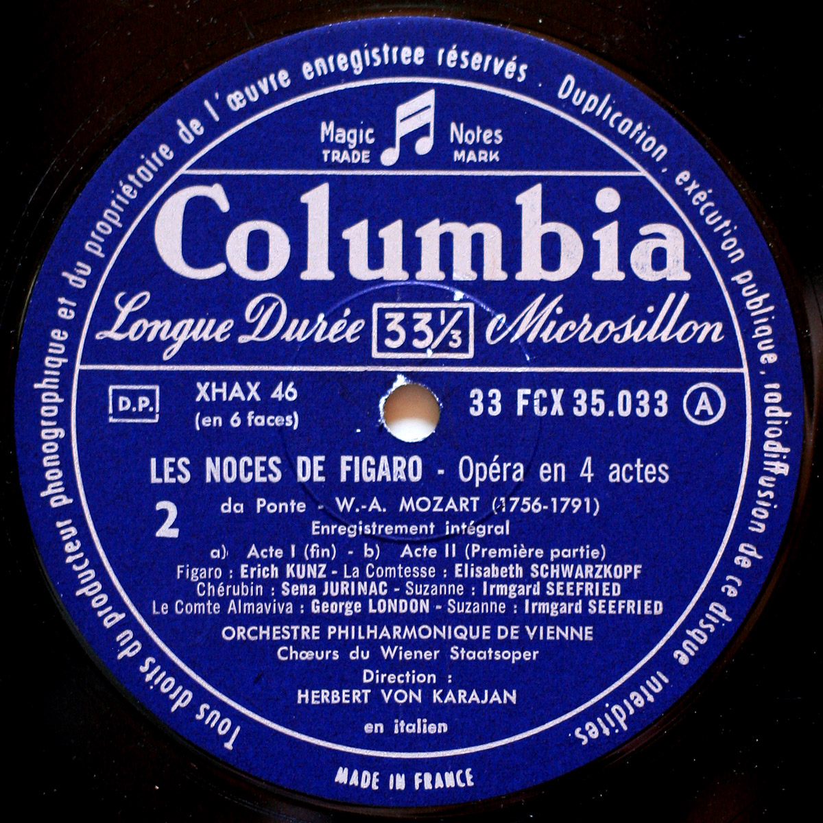Mozart • Les noces de Figaro • Columbia FCX 35033/34/35 • Elisabeth Schwarzkopf • Irmgard Seefried • George London • Elisabeth Höngen • Wiener Philharmoniker • Herbert von Karajan