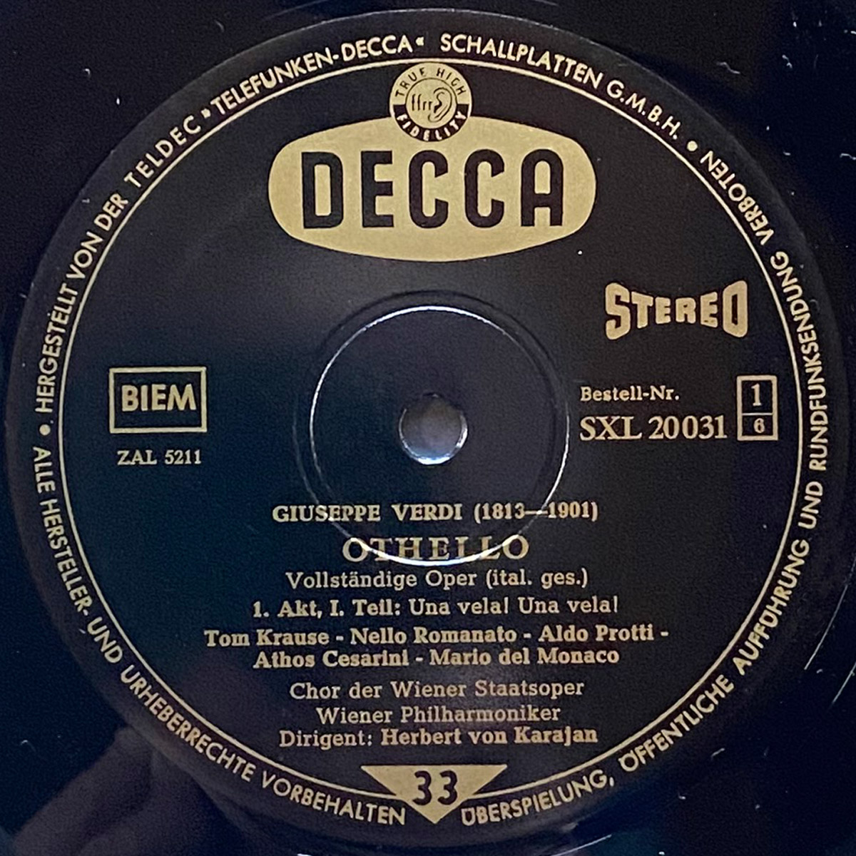 Verdi • Otello • Decca SXL 20031-33 (Germany) • Mario Del Monaco • Renata Tebaldi • Aldo Protti • Wiener Philharmoniker • Herbert von Karajan